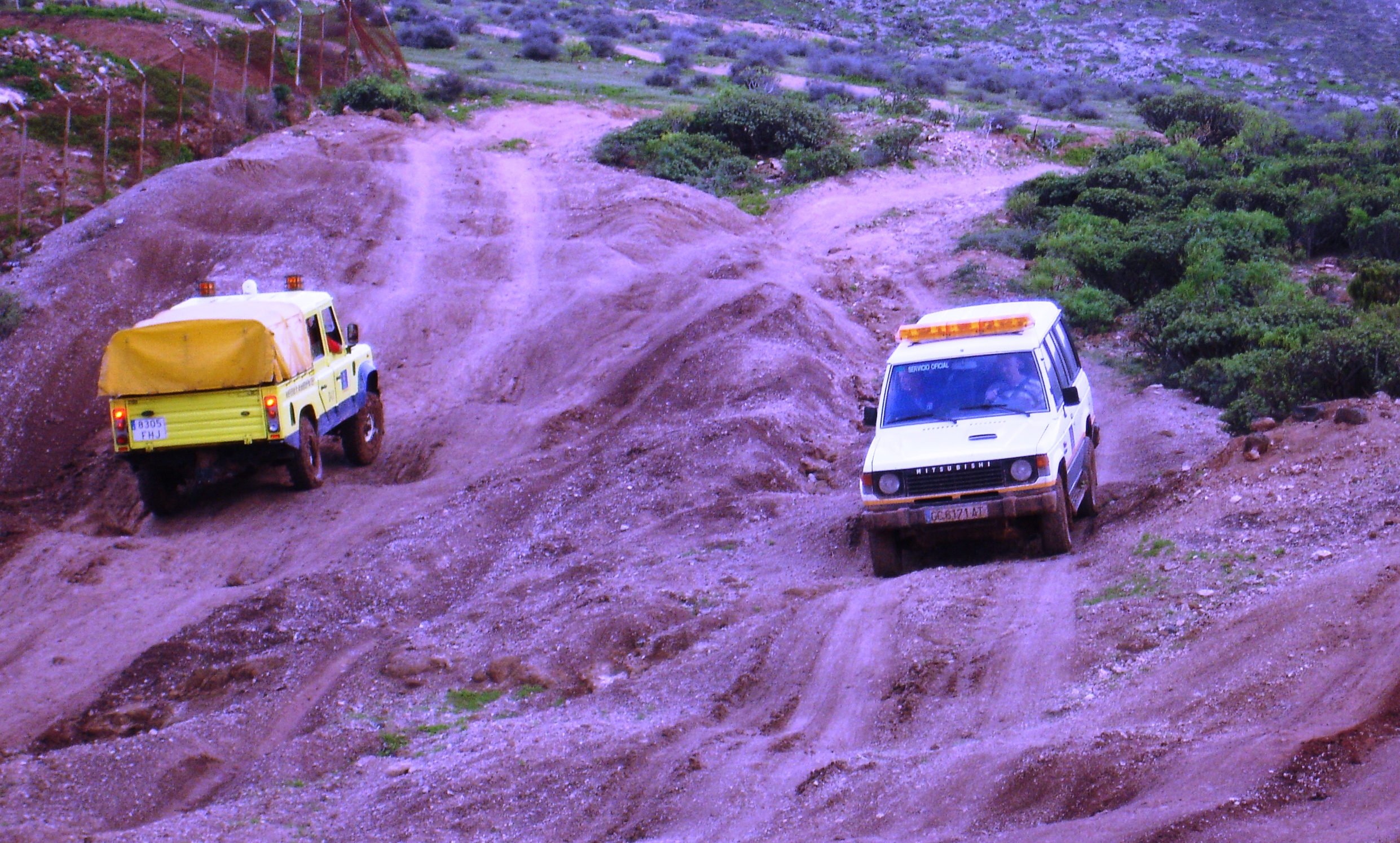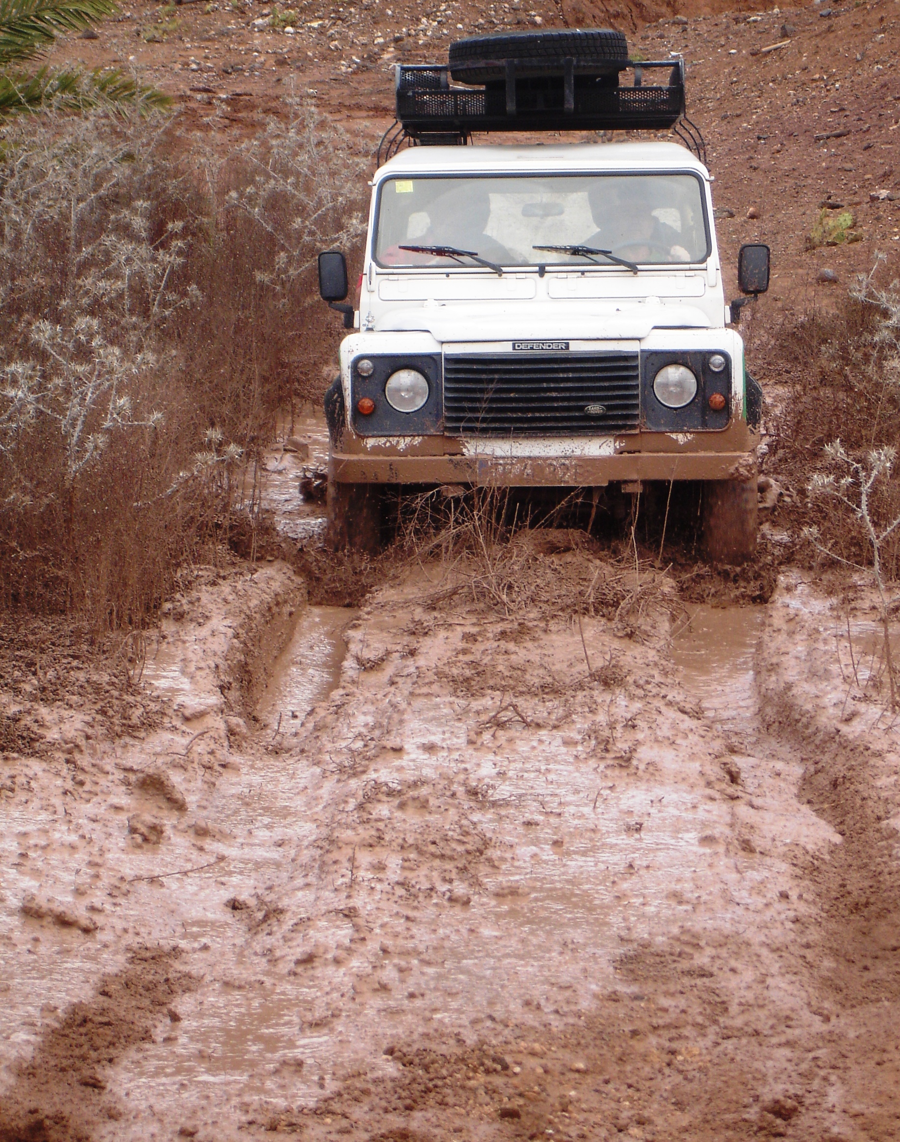 Clases prácticas en circuito con 3 vehículos y 3 monitores. Se evolucionará durante 10 horas con los dos vehículos, es decir cada alumno invertirá tres horas en la práctica en el interior del automóvil todo terreno. Además se realizarán prácticas de winch durante 90 minutos.